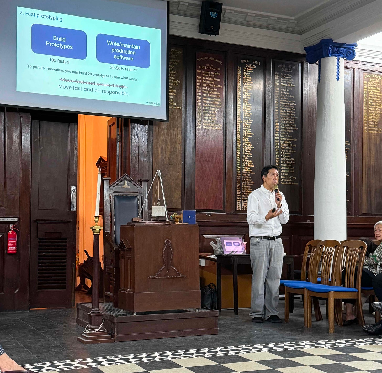 Dr Andrew Ng is an AI pioneer (https://www.andrewng.org) and recently he was visiting his family in Singapore. I was fortunate indeed to be invited to a short lecture Andrew gave on Friday night to a small audience at Lodge Scientia.